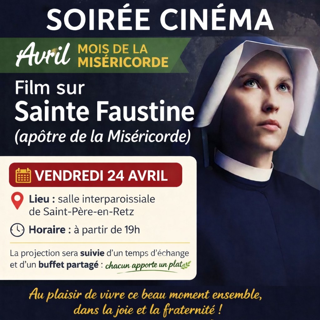 Un film sur Sainte Faustine (apôtre de la Miséricorde) sera projeté le vendredi 24 avril 2026 à partir de 19h à la salle inter paroissiale de Saint-Père-en-Retz.