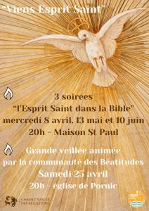 3 soirées « l’Esprit Saint dans la Bible » vous sont proposées à la maison St Paul à 20h, les mercredis 8 avril, 13 mai et 10 juin.
